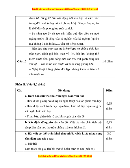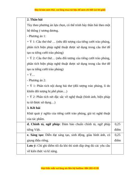 Viết bài văn phân tích một tác phẩm văn học thơ trào phúng mà em thích nhất. HƯỚNG DẪN CHẤM