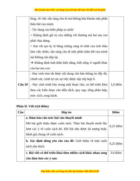 Câu 10 (1,0 điểm) Dựa vào đoạn trích trên, em hãy tóm tắt ngắn gọn nội dung của