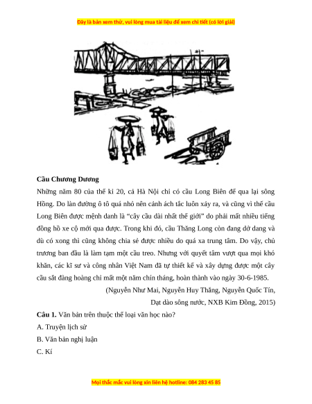 Câu 4. Các cây cầu bắc qua sông Hồng được tác giả thuyết minh trong văn bản là: