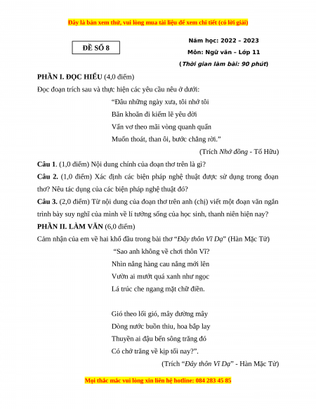 - Tailieugiaovien.com.vn giới thiệu bộ 10 đề cuối học kì 2 môn Ngữ văn 8 mới nhất năm 2022 - 2023 nhằm giúp Giáo viên có thêm tài liệu tham khảo ra đề thi Ngữ văn lớp 8.