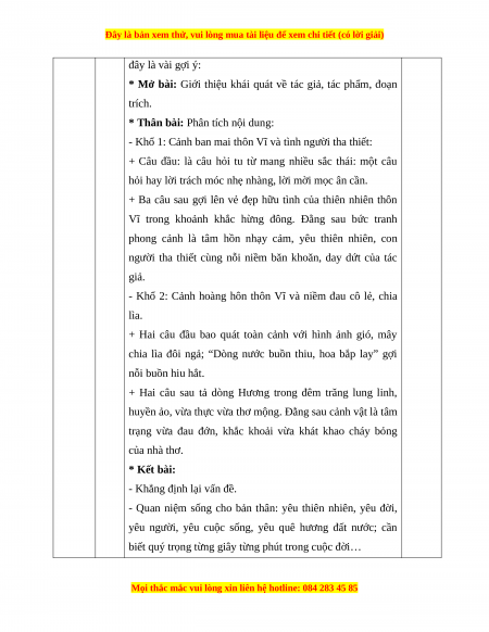 - Khổ 1: Cảnh ban mai thôn Vĩ và tình người tha thiết: