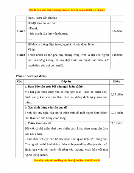 thách. (Nêu dẫn chứng) HS đặt tên cho văn bản: - Titanic Câu 7 0,5 điểm