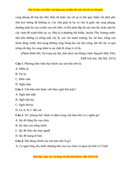 B. Phản ánh được đời sống xa hoa của vua chúa và sự nhũng Câu 4 0,5 điểm