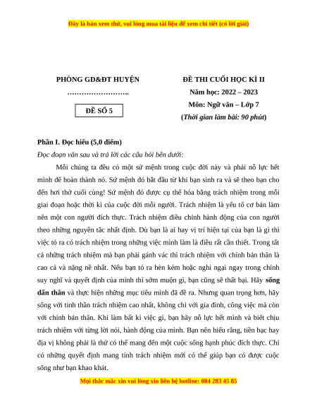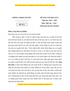 Môn: Ngữ văn – Lớp 7 ĐỀ SỐ 5