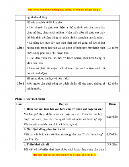 Phần II. Viết (5,0 điểm) Câu Đáp án Điểm