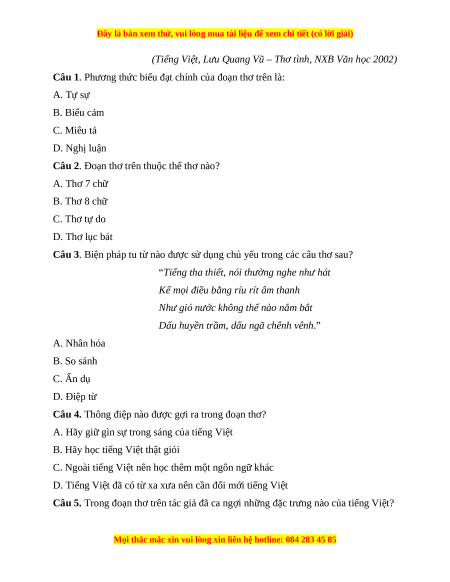 thơ: Tiếng Việt nhiều thanh điệu, gợi hình, gợi thanh, gợi cảm, có Câu 5 0,5 điểm