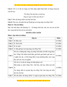 Câu 7 HS nêu được nội dung chính: Ca ngợi sự giàu đẹp của tiếng Việt 0,5 điểm