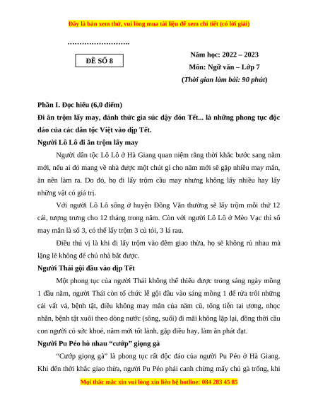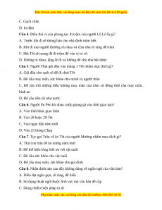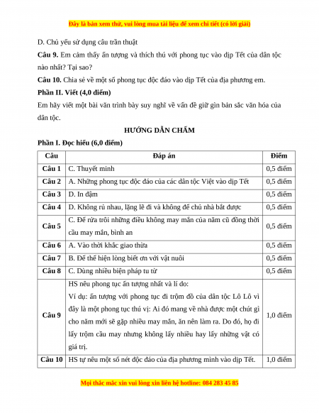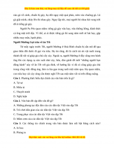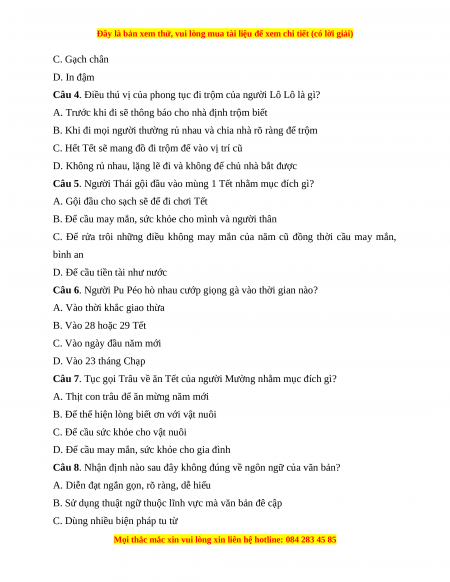 Câu 2 A. Những phong tục độc đáo của các dân tộc Việt vào dịp Tết 0,5 điểm Câu 3 D. In đậm 0,5 điểm