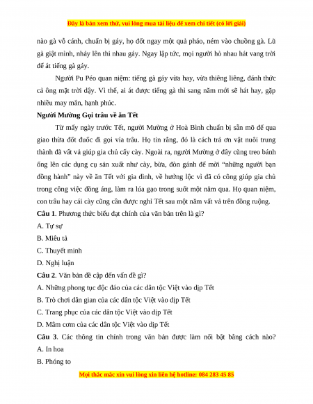 Câu 1. Phương thức biểu đạt chính của văn bản trên là gì? A. Tự sự B. Miêu tả C. Thuyết minh D. Nghị luận