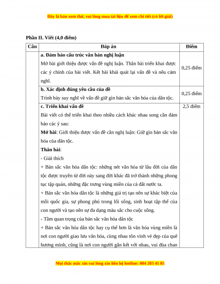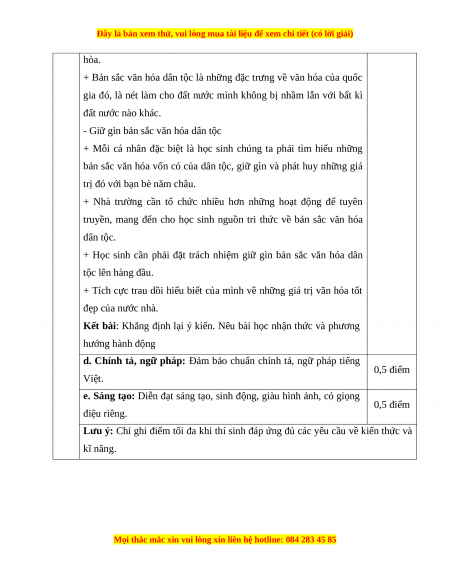 Em hãy viết một bài văn trình bày suy nghĩ về vấn đề giữ gìn bản sắc văn hóa của dân tộc. HƯỚNG DẪN CHẤM