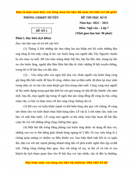 Câu 7 D. Cụ thể lễ hội đua voi 0,5 điểm
