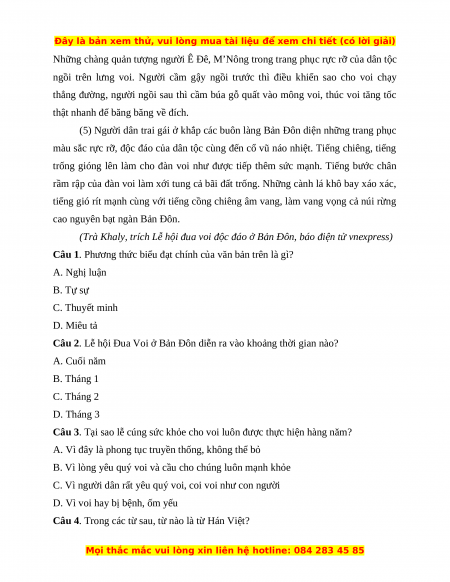 Đây là bản xem thử, vui lòng mua tài liệu để xem chi tiết (có lời giải)