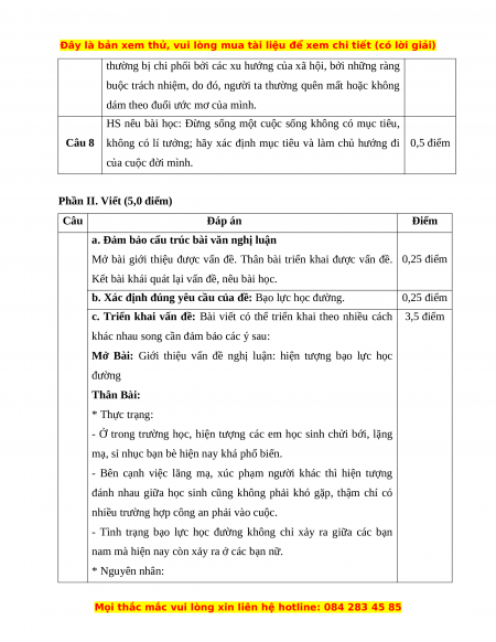 Em có suy nghĩ gì về hiện tượng bạo lực học đường? Trình bày suy nghĩ của em bằng một bài văn ngắn. HƯỚNG DẪN CHẤM