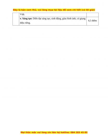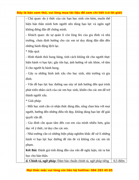 d. Chính tả, ngữ pháp: Đảm bảo chuẩn chính tả, ngữ pháp tiếng 0,5 điểm