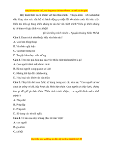 Câu 1. Đoạn trích trên thuộc kiểu văn bản nào? A. Văn bản đồng thoại B. Văn bản nghị luận C. Văn bản thông tin