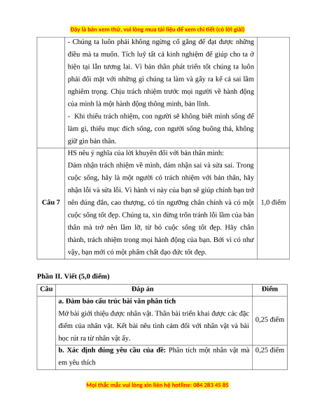 Phần II. Viết (5,0 điểm) Câu Đáp án Điểm