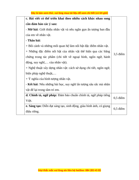 Em hãy viết một bài văn phân tích một nhân vật văn học trong cuốn sách mà em yêu thích. HƯỚNG DẪN CHẤM