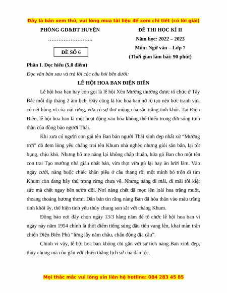 Môn: Ngữ văn – Lớp 7 ĐỀ SỐ 6