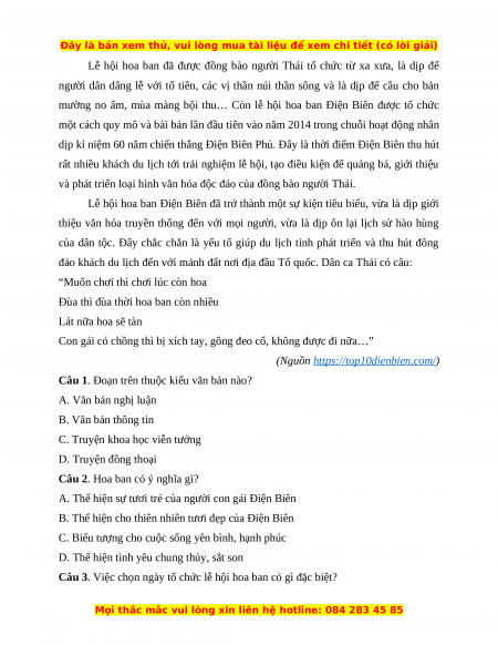 Câu 6. Theo tác giả, lễ hội hoa ban gắn với những sự kiện, sự tích nào
