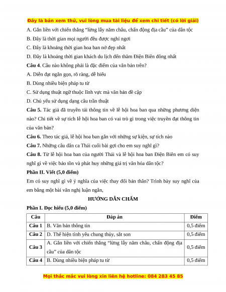 - Các phương diện: tên gọi, sự tích lễ hội, ý nghĩa Câu 5 1,0 điểm
