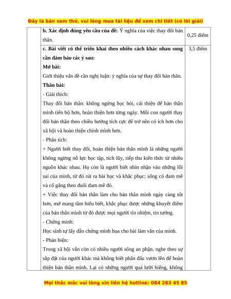 a. Đảm bảo cấu trúc bài văn nghị luận 0,25 điểm