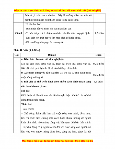Câu 8 - Ý thức được trách nhiệm của bản thân khi đưa ra quyết định. 0,5 điểm