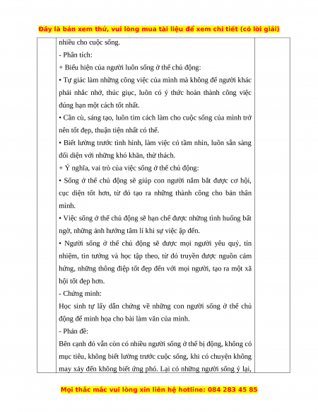 b. Xác định đúng yêu cầu của đề: Vai trò của sự chủ động trong 0,25 điểm cuộc sống mỗi người.