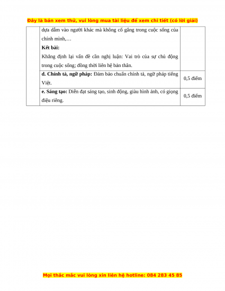 Viết bài văn nghị luận nêu suy nghĩ của em về vai trò của sự chủ động trong cuộc sống mỗi người. HƯỚNG DẪN CHẤM