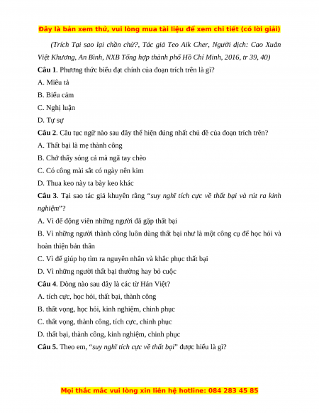 Đây là bản xem thử, vui lòng mua tài liệu để xem chi tiết (có lời giải)