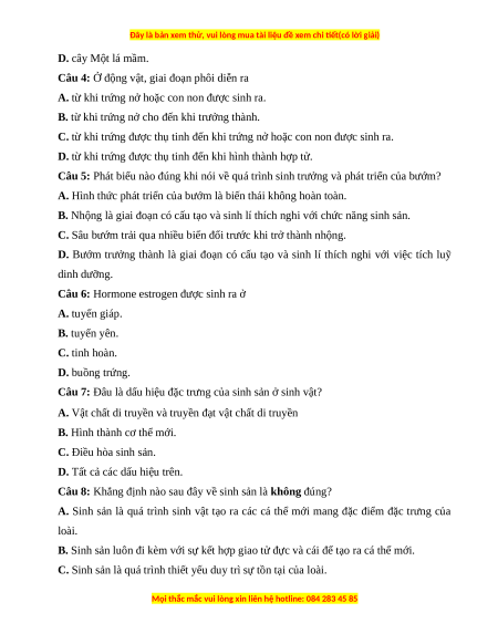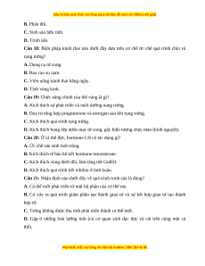 Câu 6: Hormone estrogen được sinh ra ở A. tuyến giáp. B. tuyến yên. C. tinh hoàn. D. buồng trứng.