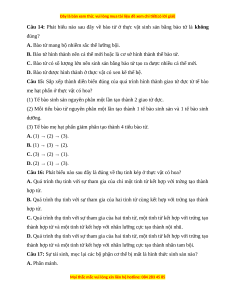 Câu 15: Sắp xếp thành diễn biến đúng của quá trình hình thành giao tử đực từ tế bào