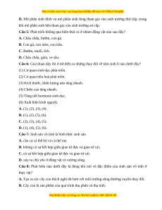 Câu 1: Toàn bộ những biến đổi diễn ra trong chu kì sống của cá thể, bao gồm sự thay