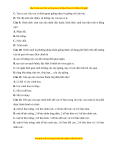 Câu 8: Phát biểu nào dưới đây là đúng khi nói về đặc điểm của sinh sản vô tính ở thực vật?
