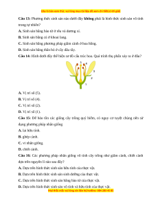 Câu 13: Phương thức sinh sản nào dưới đây không phải là hình thức sinh sản vô tính trong tự nhiên?
