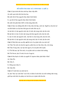 ĐỀ KIỂM TRA HỌC KÌ 2 SINH HỌC 12 (ĐỀ 2)