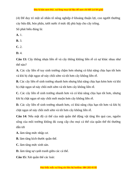 Câu 14: Nếu mật độ cá thể của một quần thể động vật tăng lên quá cao, nguồn
