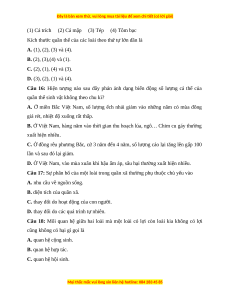 Câu 11: Ve sầu có số lượng nhiều vào các tháng mùa xuân hè nhưng rất ít vào