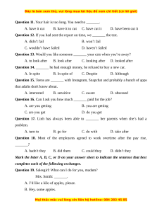 Question 18. Most of the employees agreed to work overtime after the pay rise, _______? A. hadn’t they B. did them C. could they D. didn’t they