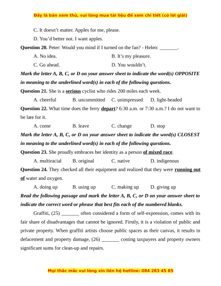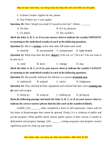 Question 21. She is a serious cyclist who rides 200 miles each week. A. cheerful B. uncommitted C. unimpressed D. light-headed