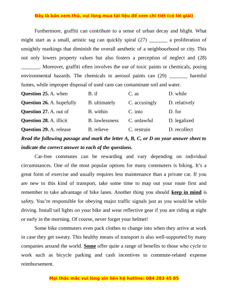 fumes, while improper disposal of used cans can contaminate soil and water. Question 25. A. when B. if C. as D. while