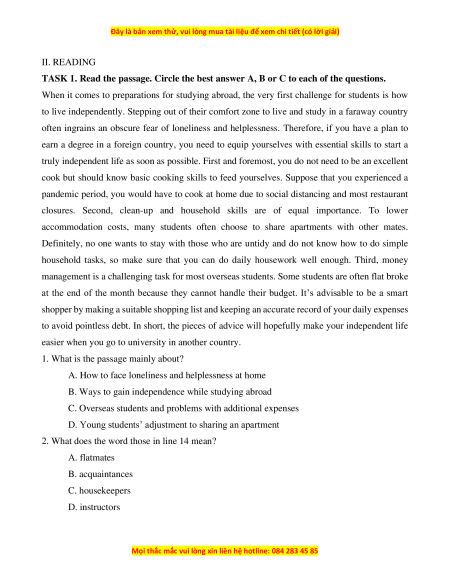 TASK 1. Read the passage. Circle the best answer A, B or C to each of the questions.