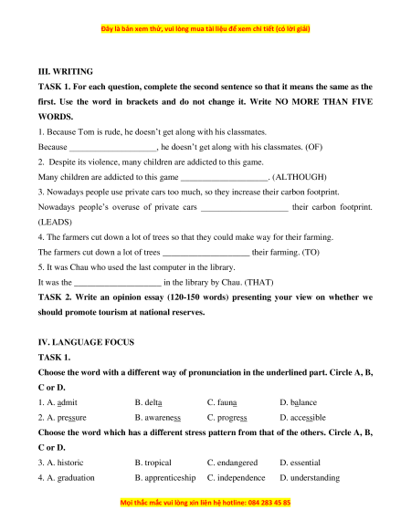 should promote tourism at national reserves. IV. LANGUAGE FOCUS TASK 1.