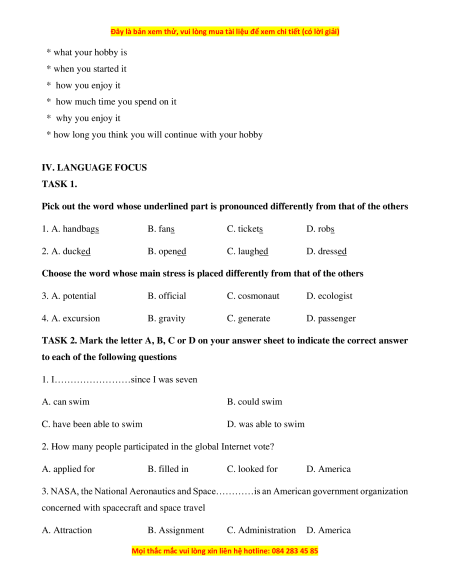 * how long you think you will continue with your hobby IV. LANGUAGE FOCUS TASK 1.