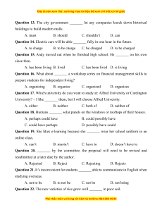 Question 19. She likes e-learning because she _______ wear her school uniform in an online class. A. can’t B. mustn’t C. have to D. doesn’t have to
