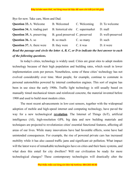 Choose the letter A, B, C, or D on your answer sheet to indicate the most suitable