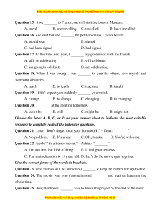 Question 20. I _______ at the meeting tomorrow. A. won’t be B. will C. might be D. might not