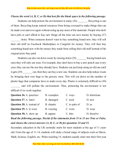 Students can also cut down waste by reusing items (28) _______ buying brand-new