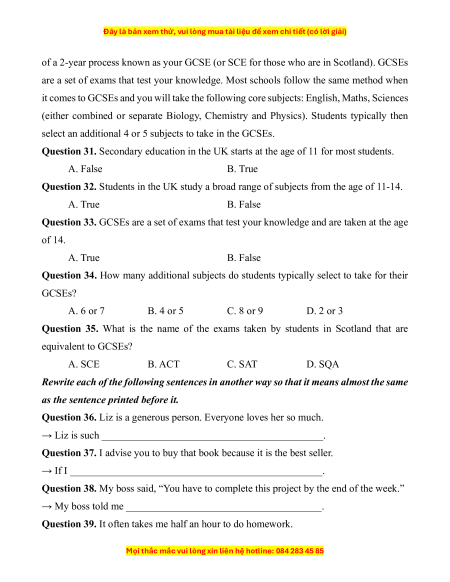 Question 35. What is the name of the exams taken by students in Scotland that are equivalent to GCSEs? A. SCE B. ACT C. SAT D. SQA