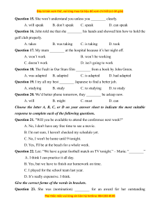 Question 20. We’d better phone tomorrow, they ________ be asleep now. A. will B. might C. must D. can