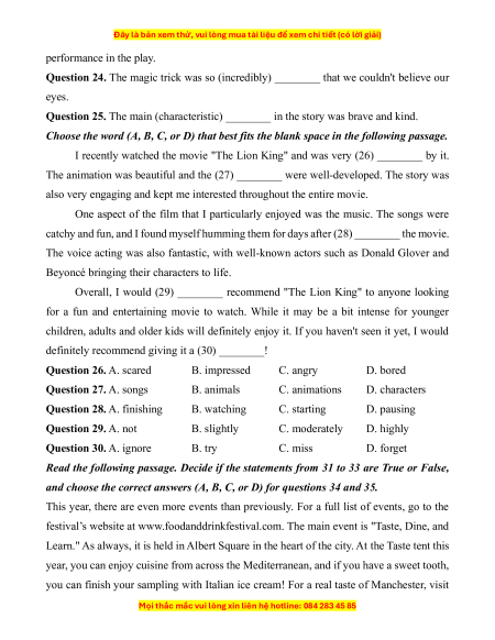 Overall, I would (29) ________ recommend "The Lion King" to anyone looking